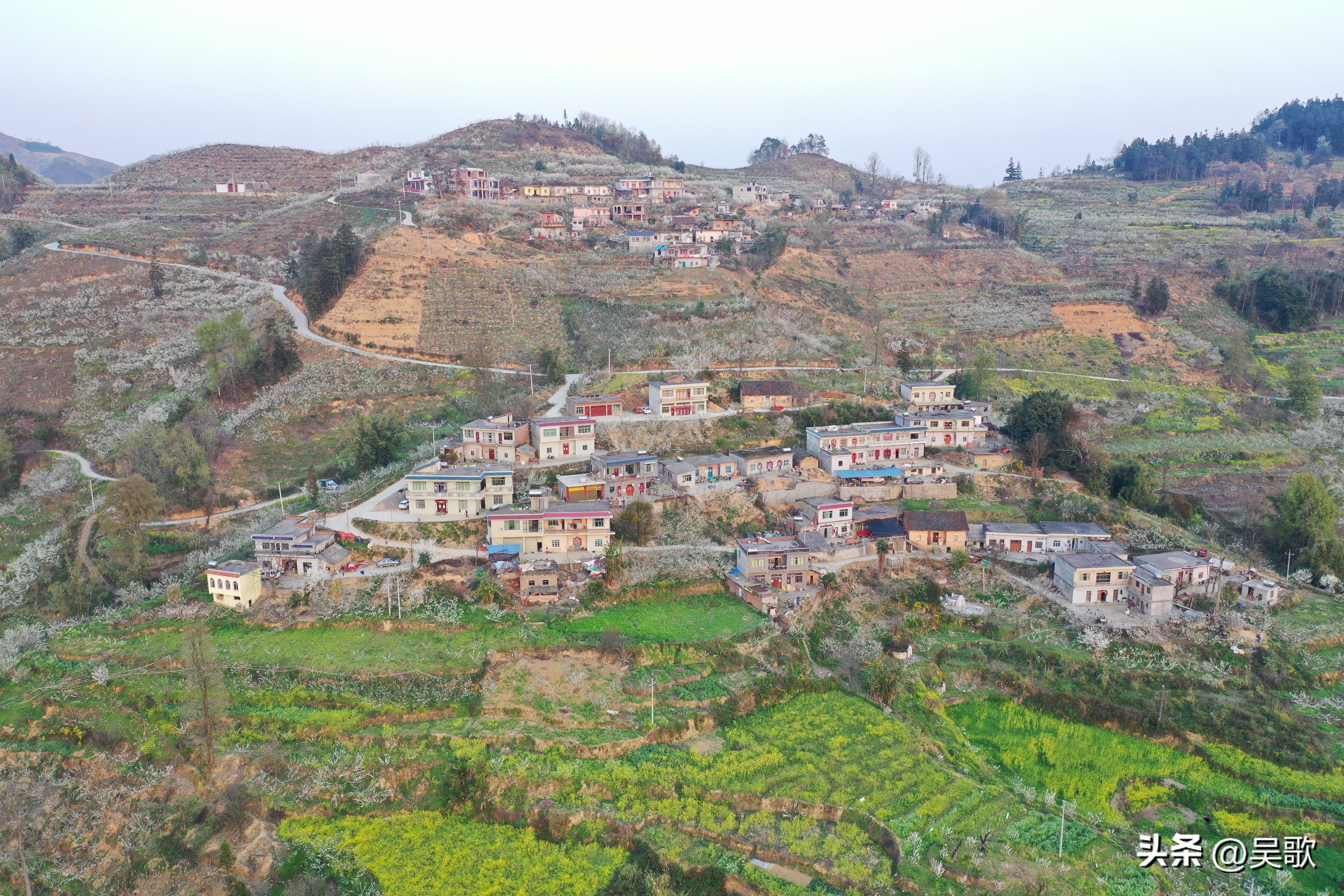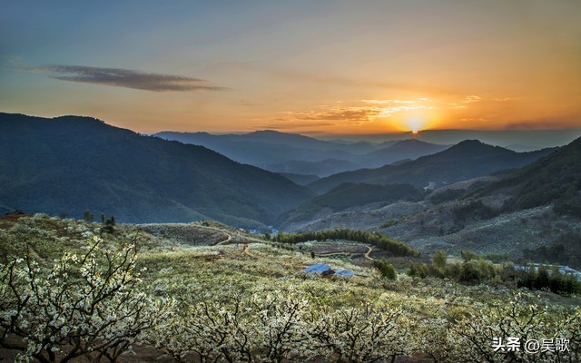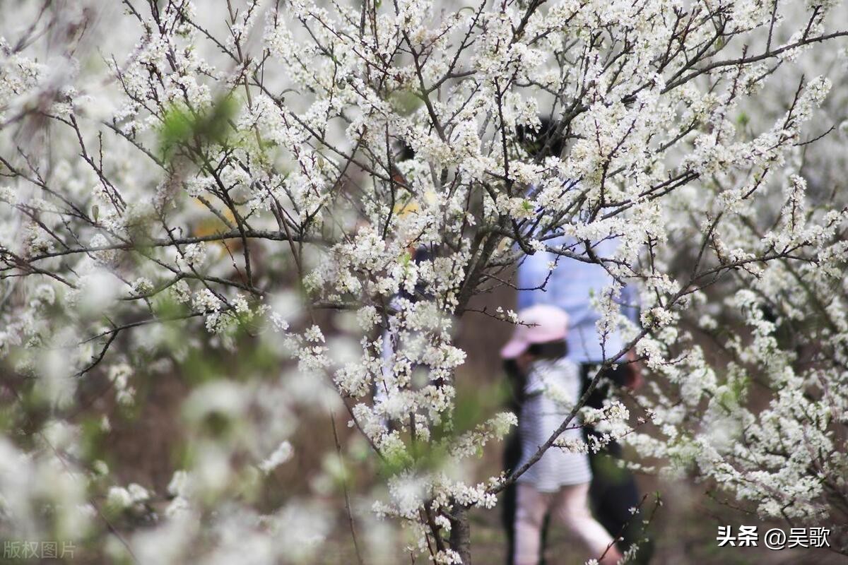 从远处眺望,连绵的山峦像是被轻柔的云朵包裹,那是漫山遍野的李花交织而成的盛景。走近细看,每一朵李花都是大自然精心雕琢的艺术品。五片洁白无瑕的花瓣,簇拥着嫩黄的花蕊,如雪花般纯净,又似繁星般璀璨,在枝头俏皮地眨着眼睛。它们你挨着我、我挨着你,热热闹闹地挤满了枝头,压弯了树枝,形成一道道花的瀑布,肆意地流淌着春日的浪漫。